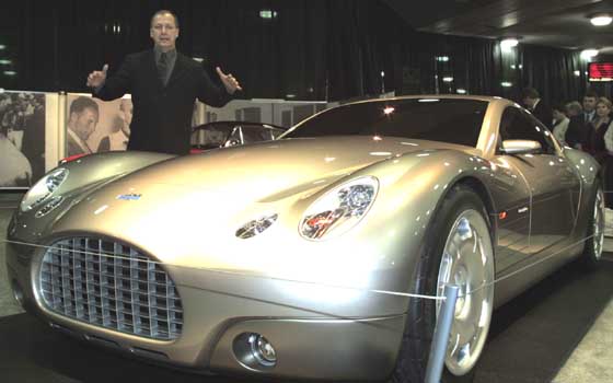at the 2001 North American International Auto Show ![]() SCROLL DOWN FOR MORE PICTURES BELOW: Stewart Reed showed his latest project car at the 2001 North American International Auto Show. The "C 7" sports car is a new design created for Cunningham Motors. It was introduced at the North American International Auto Show on January 8, 2001, the C 7 is a sleek blend of modern features and the classic stylings of Cunningham's earlier grand touring cars and racing vehicles. ![]() First photos of the Cunningham C 7 at its unveiling Wednesday January 10, 2001 Featuring a nearly 7 liter, V - 12 engine, the C 7 is capable of speeds over 200 mph. Stewart describes the C 7 as "a sculpture on wheels"; the first pictures of the car below give an excellent indication of what he means by that. The C 7 retains numerous elements of previous Cunningham designs such as its classic wide-mouth grille, the graceful curves of the front fenders and the round headlights. New elements of the design includes the car's front mid-engine placement for improved weight distribution and performance, its 22 inch steering wheel, and the cockpit-like interior with its four bucket seats. The C 7 also features 360 degree collision sensors. The C 7 could become Cunningham